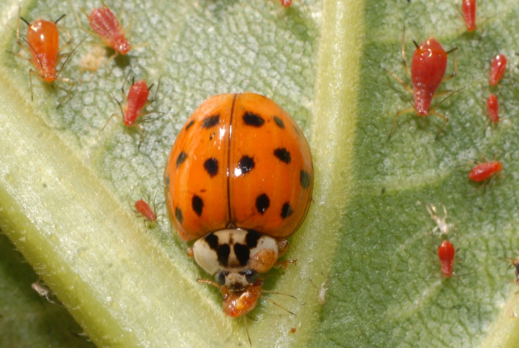 Lady Bug eating Aphids – a good example of the predator – prey relationship at work.