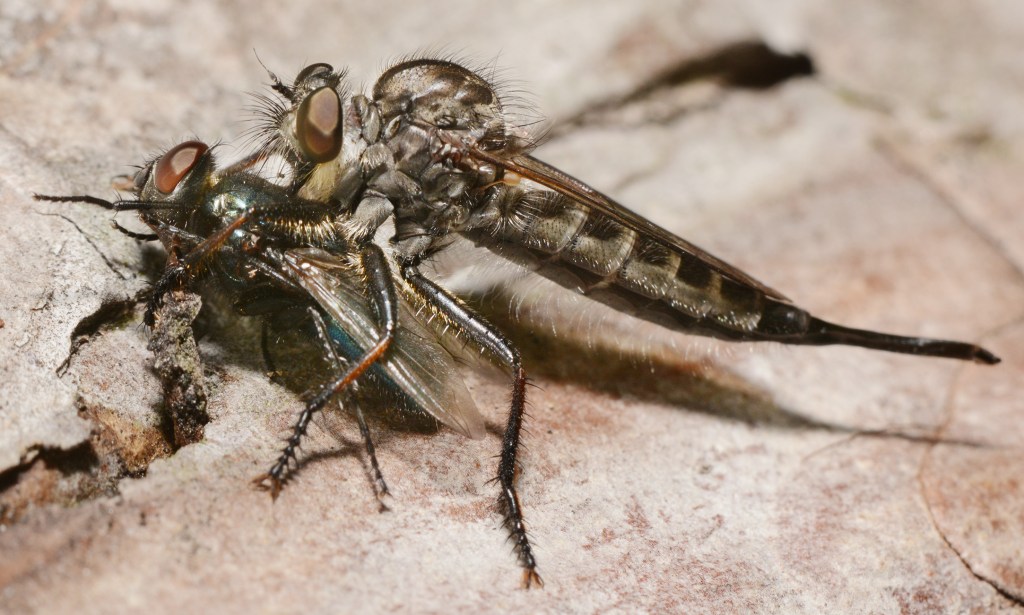 Bumble Bee Mimic Robber Flies are also called the “assassin” flies as they lie in wait for unsuspecting bees, wasps and butterflies to pass by and then they attack.